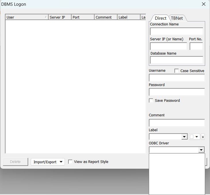DBMS LOGON에서 ODBC Driver가 안 보입니다.