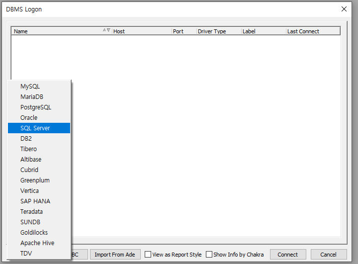 User Guide를 보고 하는데 DBMS Logon에서 아무 반응이 없습니다.