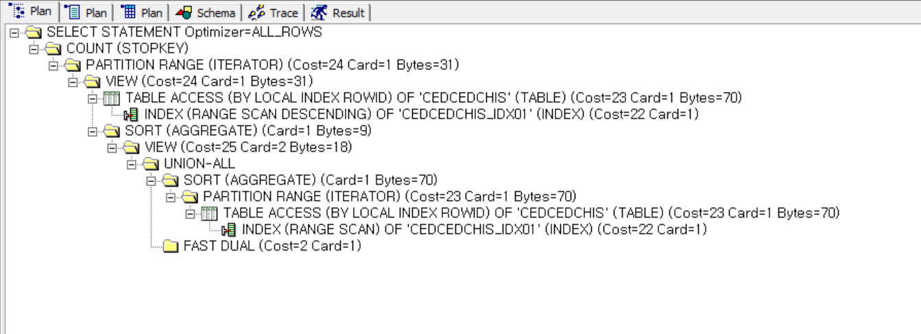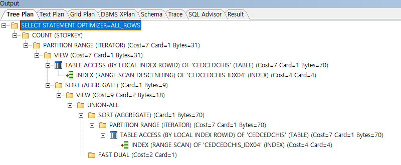 7 Version에서는 잘못된 index로 나오고 있습니다. (힌트를 아무리 조정을 해도 Partition이 지정한 Plan으로만 나오고 실행 속도도 느림)