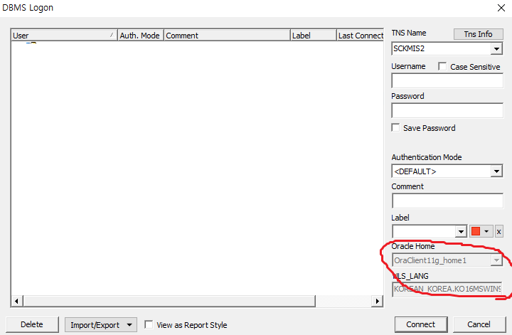 DBMS_LOGIN 화면에서 접속 DB별 NLS_LANG을 개별로 설정 하고 싶은데 첨부된 이미지와 같이 비활성화 되어있어 변경 할 수 없습니다.