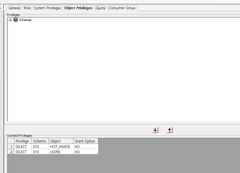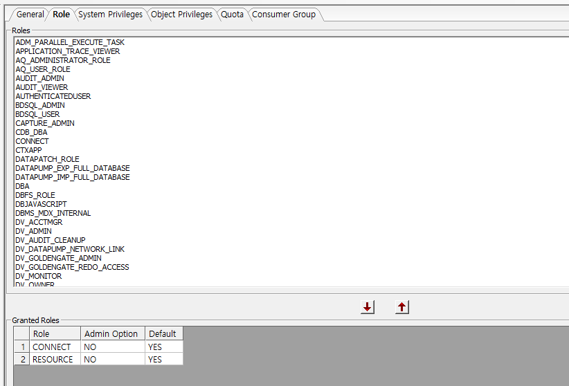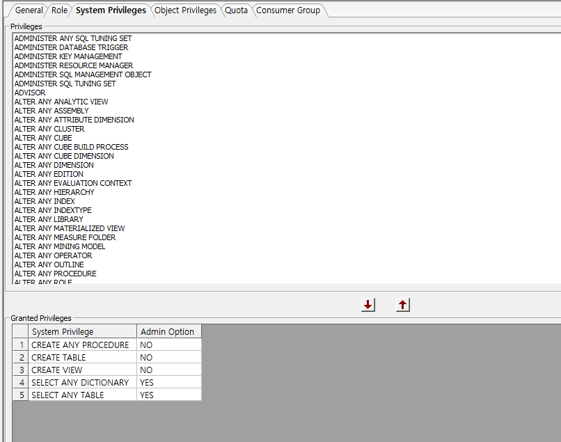 보통 문제가 발생하는 계정의 경우 권한은 CONNECT,RESOURCE,UNLIMITED TABLESPACE 입니다.