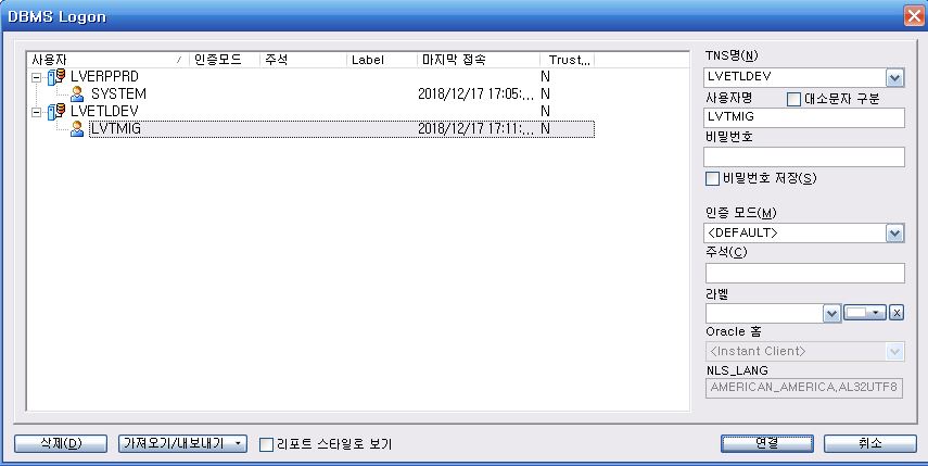 - DB Client 버전: instant client version 12.2.0.1.0 32bit