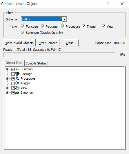 Compile invalid objects기능 재문의 드립니다.