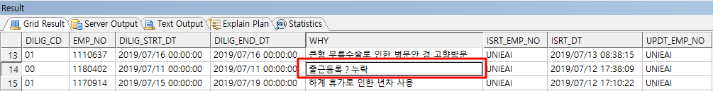 해당 테이블을 EAI 를 통해 MSSQL로 인터페이스 하고 있는데, MSSQL에서도 동일하게 '?' 문자가 보이네요.