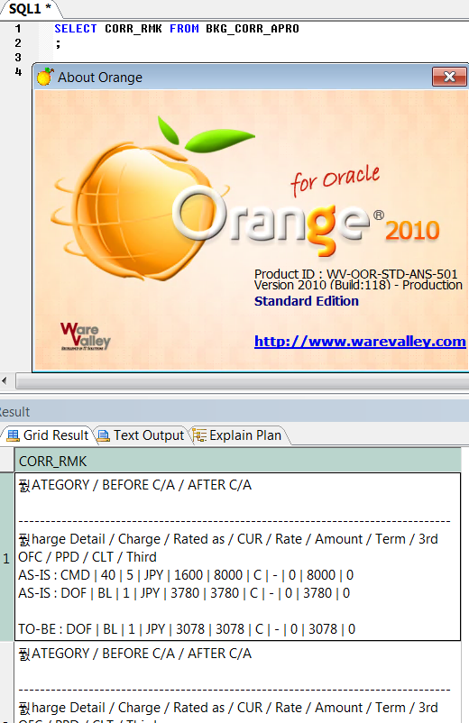 - 제품명 및 버전: Orange for oracle 2010 standard edition