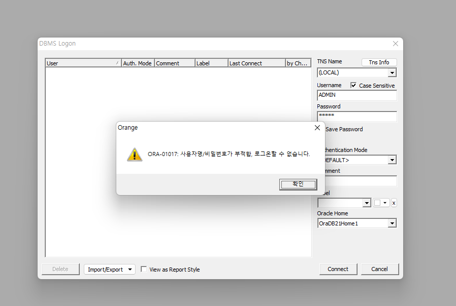 - 제품명 및 버전: Orange for ORACLE 1.0 DBA Unicode